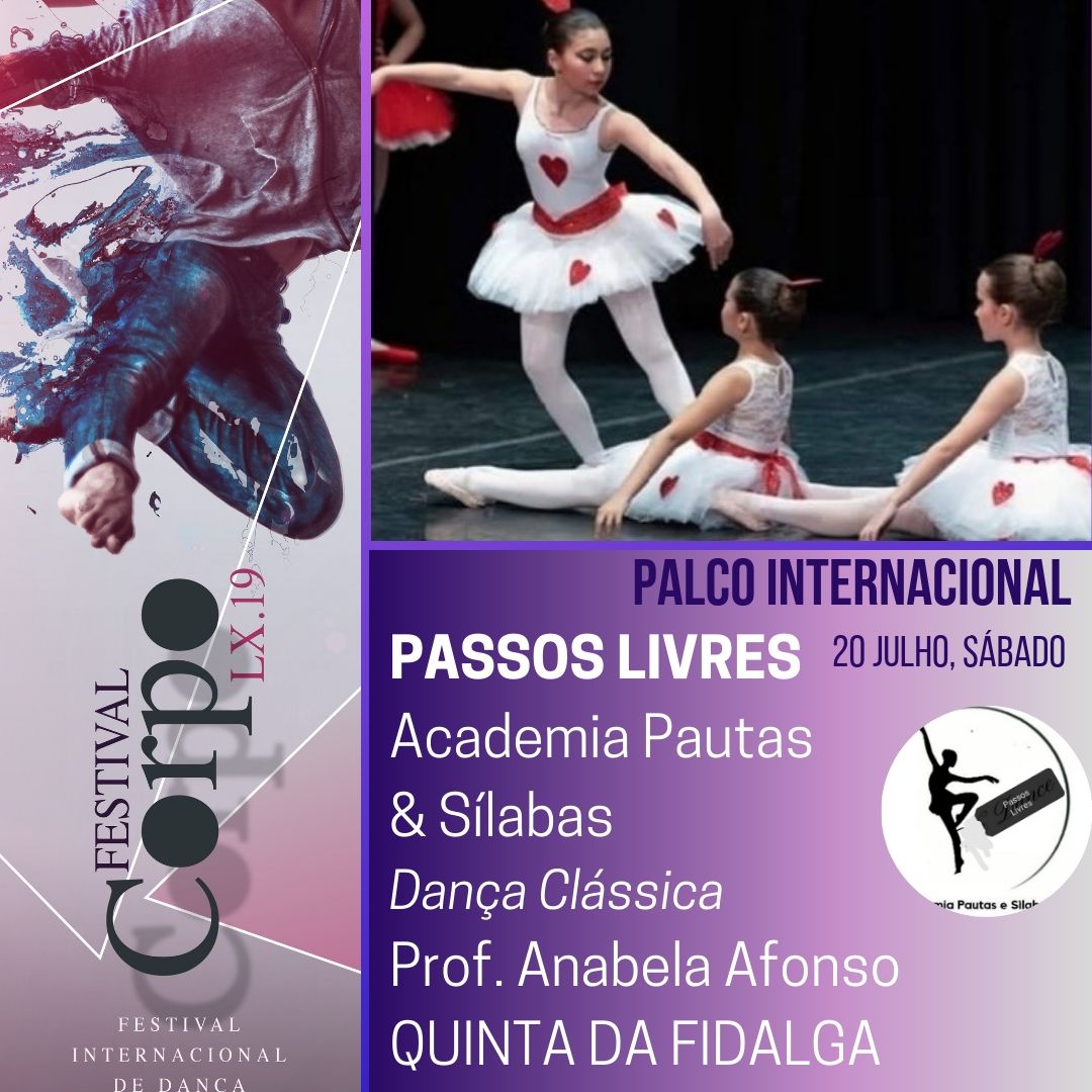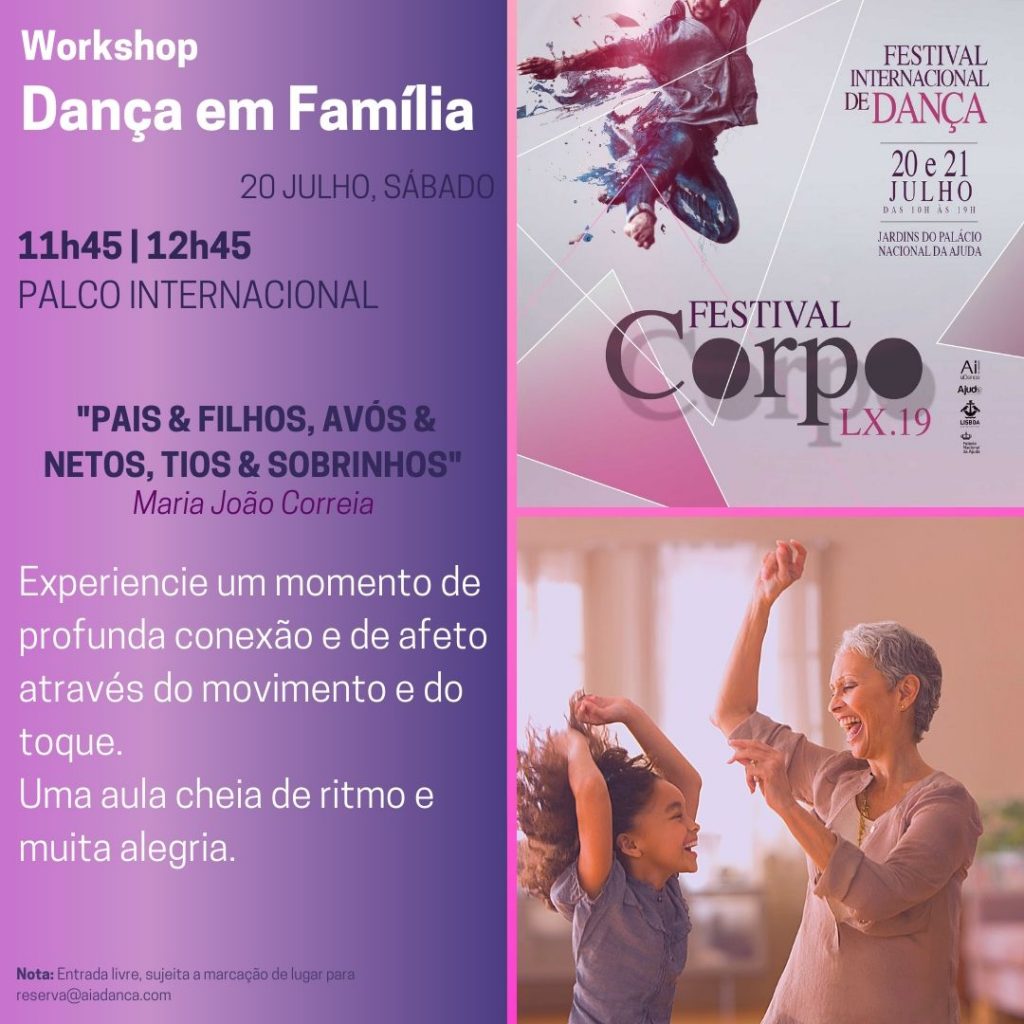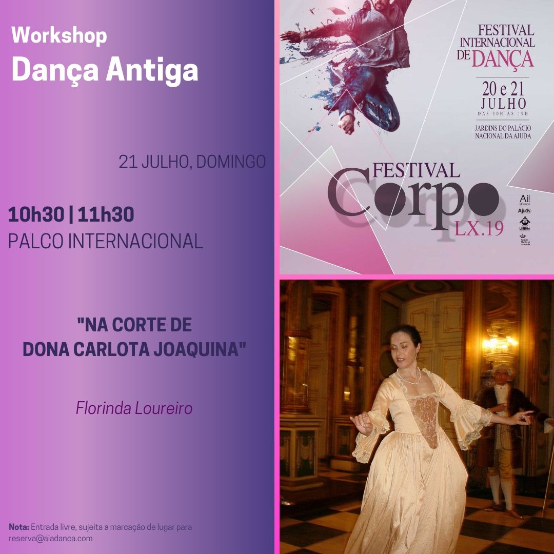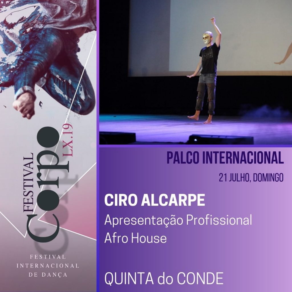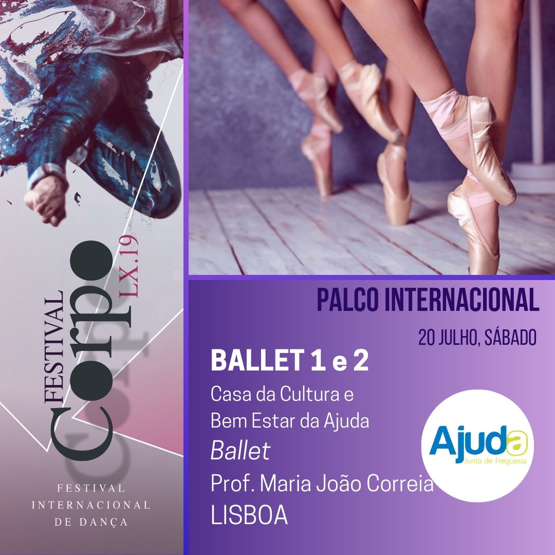 Nos dias 20 e 21 de julho 2019 , a Junta Freguesia da Ajuda com apoio da Câmara Municipal de Lisboa acolhem a 9ª edição do FestivalCorpo | Encontro Internacional de Dança, a 1.ª Edição em Lisboa,