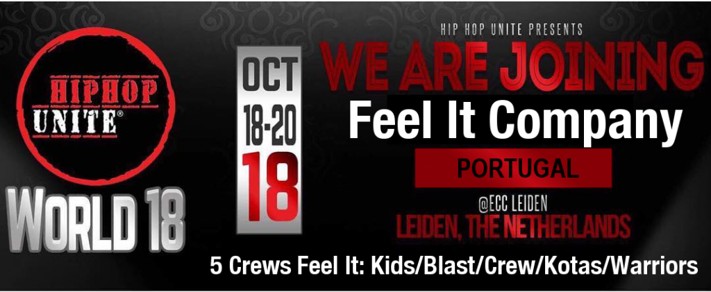 Feel It Company vai estar presente no 2018 Hip Hop Unite World Championships no ECC Leiden em Leiden, Neatherlands de 18 a 20 de Outubro 2018 com 5 Crews em 5 escalões, a representar Portugal: